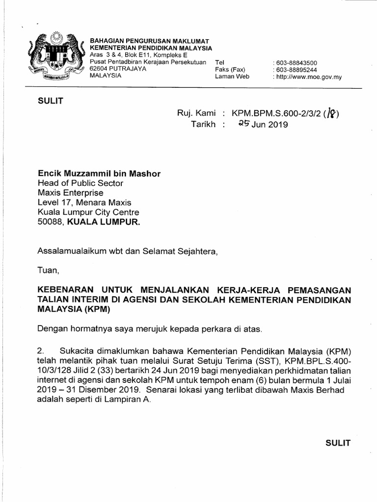 contoh surat kebenaran kementerian pelajaran malaysia
