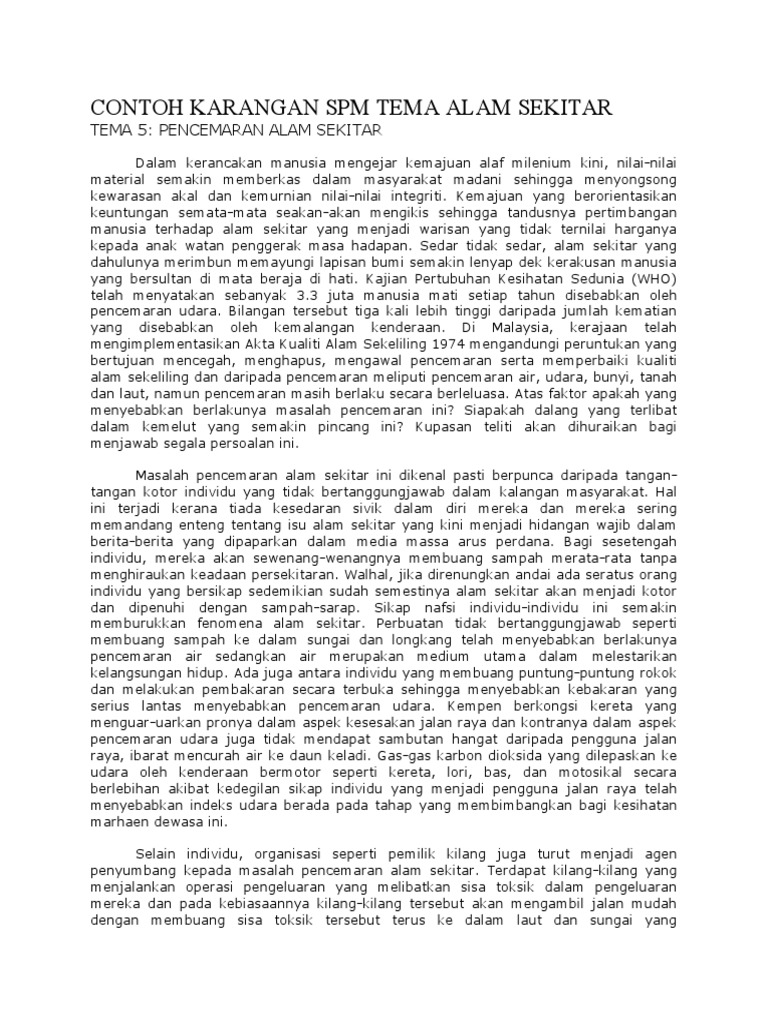 Pencemaran alam sekitar spm contoh karangan bahasa tamil langkah mengatasi. Kesan Pencemaran Alam Sekitar Pencemaran alam sekitar telah memberi kesan yang buruk terhadap hidupan di dunia pada masa kini. Karangan Bm Alam Sekitar Spm F5 Docx Menjelang Abad Ke 21 Apabila Masyarakat Kita Semakin Maju Kita Dapati Bahawa Tapak Bumi Ini Telah Menjadi Mangsa Course Hero.